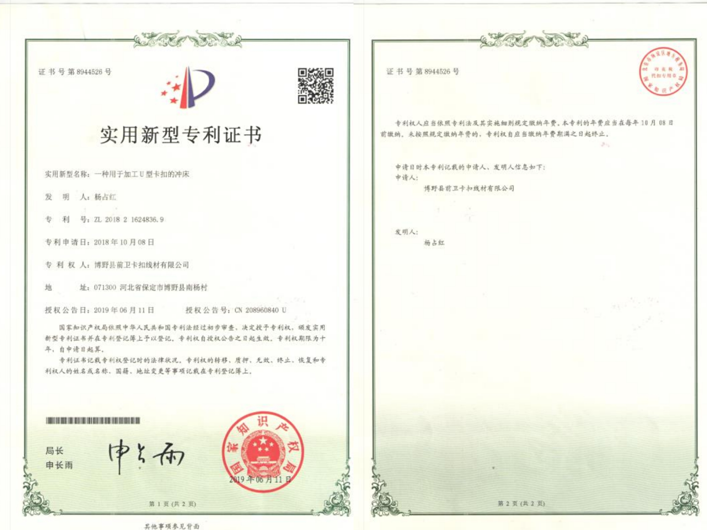 專利證書