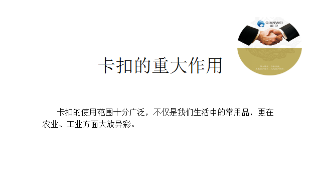 您現在所在的位置:卡扣廠家>新聞資訊>公司新聞>卡扣使用范圍廣泛