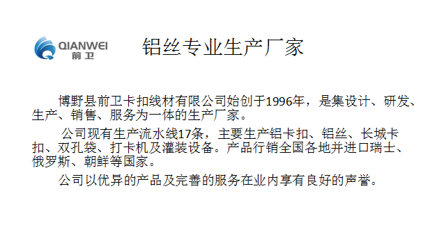 您現在所在的位置:卡扣廠家>新聞資訊>行業新聞>鋁絲用途廣泛